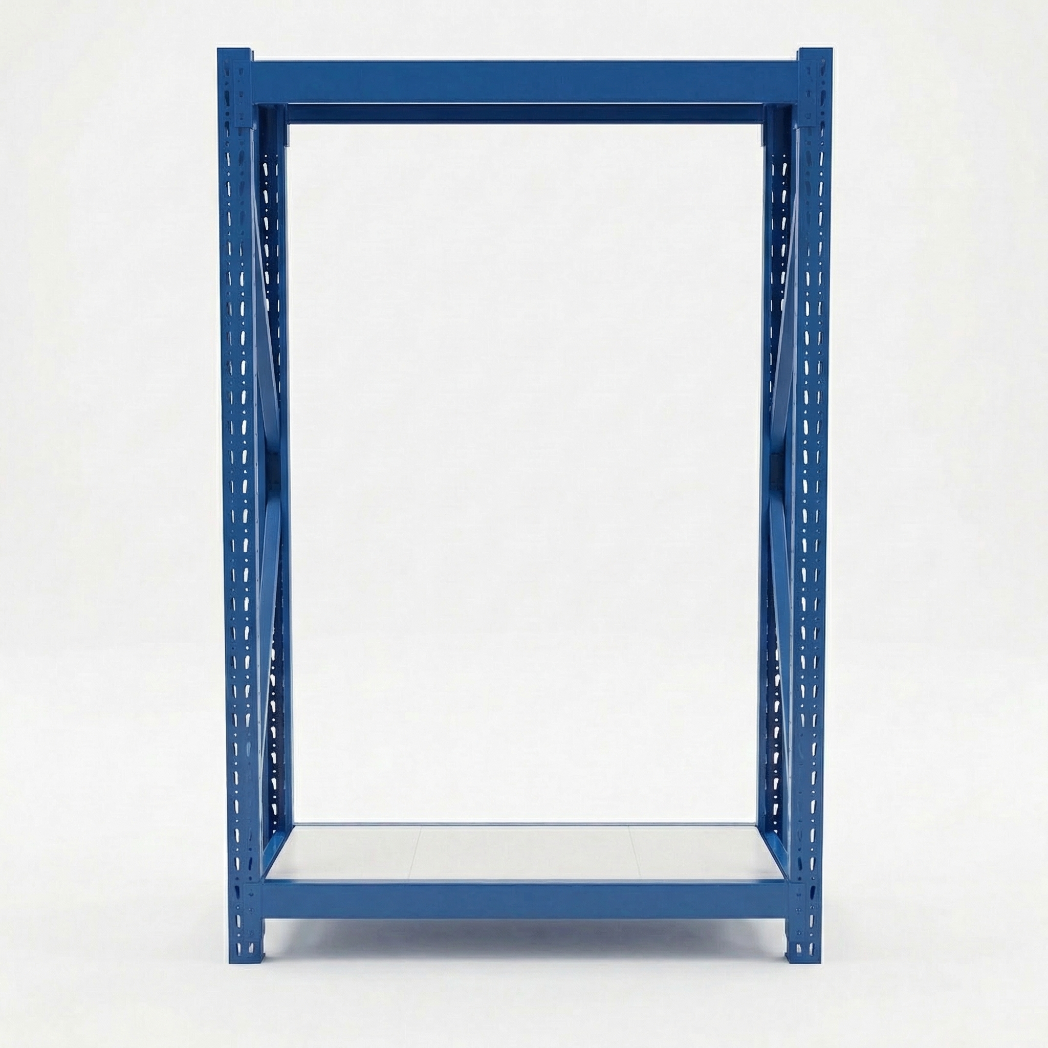 – Sistema de almacenaje metálico con estantes encastrables, los pórticos vienen desarmados para abulonar.